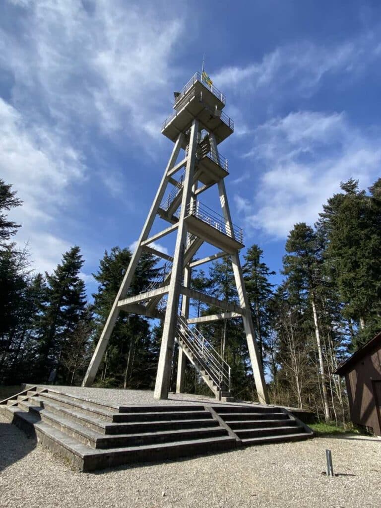 Selbstverständlich haben wir 18 Wanderwillige uns munter und rechtzeitig wie ausgeschrieben im Bahnhof Bern getroffen, herzlich begrüsst von Heinz Schweizer und seiner Wanderunterstützung Sylvia Den. Aber was wäre ein Panther-Wandertag ohne Startkaffee mit Gipfeli? Eben – kann die KI ja nicht wissen. Richtig „beschrieben“ ist die herrliche, sanfte Landschaft im Sonnenschein. Immerhin muss man der weltweiten Datensammlung dafür nur angeben: „Schweiz“, denn bei uns ist ja jeder Quadratmeter schön! Die zumindest am Vormittag noch recht frische Bise war wiederum nur für uns Erdenbürger spürbar und nicht in der cloud, wen wunderts. Auch den Satz „Weg über Hochwacht bot …“ muss ich ergänzen. Herrschaften – der Weg zur Hohwacht hinauf war sacksteil! Wir haben geschnauft, die Jacken versorgt (um sie oben natürlich wieder aus den Rucksäcken zu holen), und sind trotzdem noch die vielen Stufen zum eigentlichen Turm hinauf gestiegen. „Der erfahrene Wanderführer“ war Heinz! Unser Heinz Schweizer – da muss man doch nicht erwähnen, dass er von vielen Details berichten kann – das macht er doch immer!